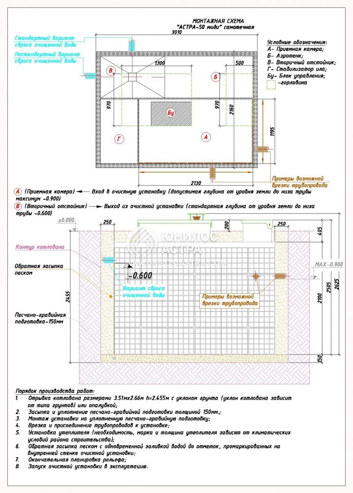 Глубина врезки подвод. магистрали: 80 - 100 см