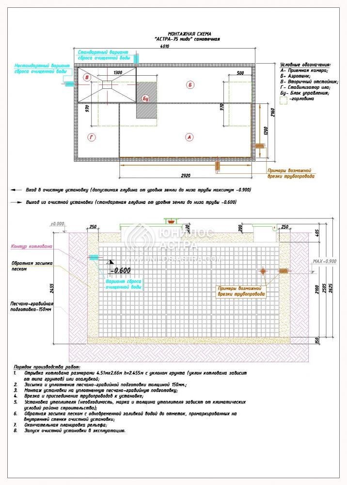 Глубина врезки подвод. магистрали: 80 - 100 см